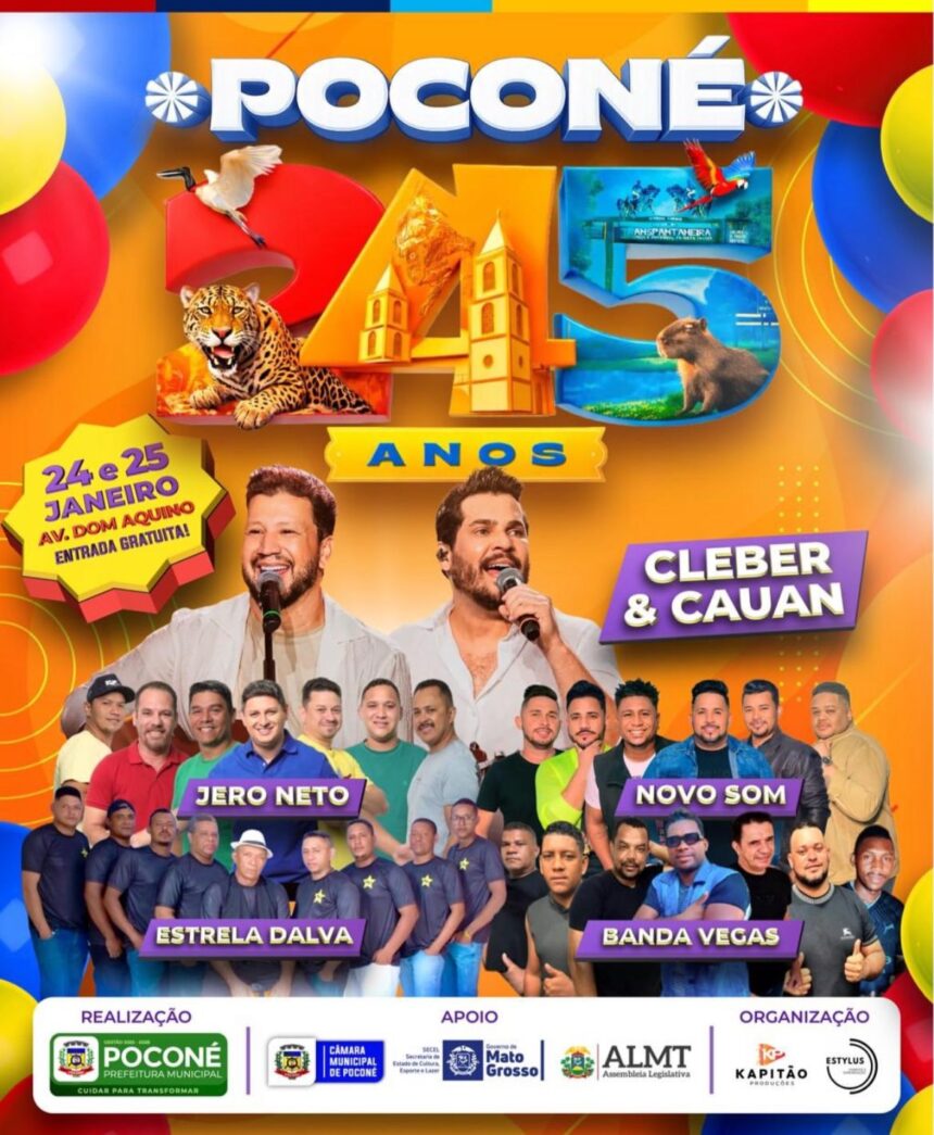 A programação comemorativa foi preparada pela Prefeitura Municipal de Poconé, com foco em aproximar o poder público da comunidade, celebrar conquistas e anunciar novos avanços para o município. Ao longo da semana, a população poderá participar de eventos esportivos, atos cívicos, entregas e retomadas de obras, além de grandes shows musicais gratuitos.